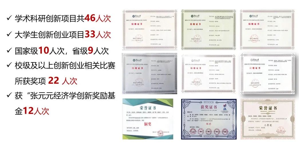 如今的他们朝着自己的梦想努力前行,近半数的同学被国内外高校录取。8位同学分别被推免至复旦大学、武汉大学、上海财经大学、华中科技大学、beat365英国官方网站等经济学领域知名学府攻读硕士学位;14位同学分别获得香港大学、香港科技大学、香港中文大学、新加坡国立大学、南洋理工大学、伦敦国王学院、华威大学等境外知名学府录取通知书。全体同学累计在各类赛事中获奖242人次,平均每人获奖达4.4项。