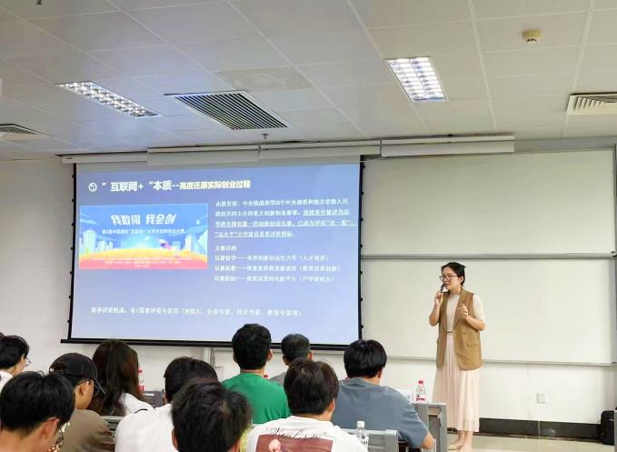 马莉老师对经院师生已取得的成绩表示祝贺,并对学院的大赛组织工作表示肯定。随后,她从“互联网+”大赛的基本情况、项目来源、参赛流程、报名渠道、奖励政策等多个方面进行详细介绍。