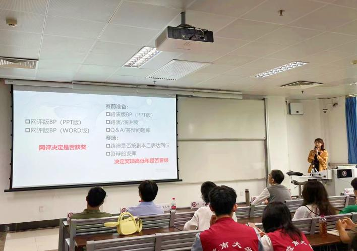 开营仪式后,教学办吴嘉明老师开展了“互联网+”训练营首次线下培训,解答同学们对于赛事提出的疑问,并组织训练营学员们观看“互联网+”国赛专家培训视频,系统学习了项目商业模式的设计。