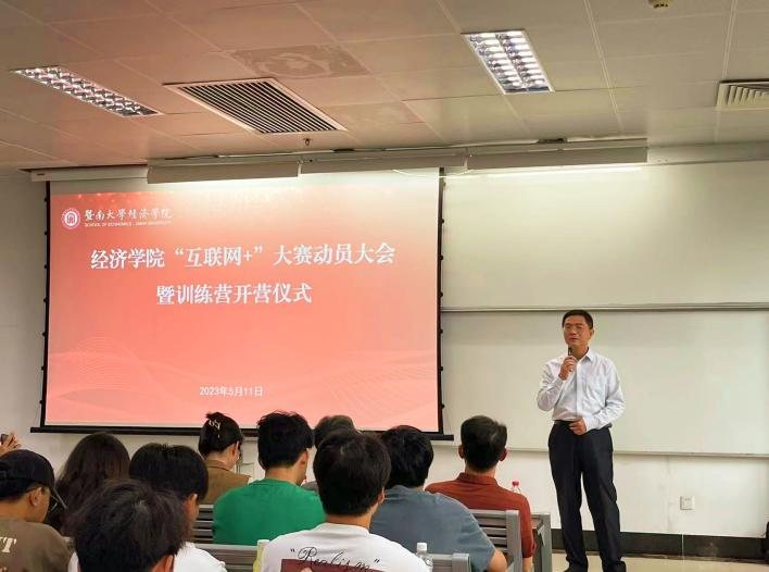 5月11日,beat365英国官方网站“互联网+”大赛动员大会暨训练营开营仪式在番禺校区教学楼214室举行。beat365英国官方网站副院长蒋海、创业学院老师马莉、经济学系党总支书记刘景章、财税系党总支书记罗勇辉、各系教学主任李丽芳、伍业锋、刘新荣、唐飞鹏以及学院教学办老师和辅导员参加大会,会议由本科教学管理办公室主任唐庆峰主持。