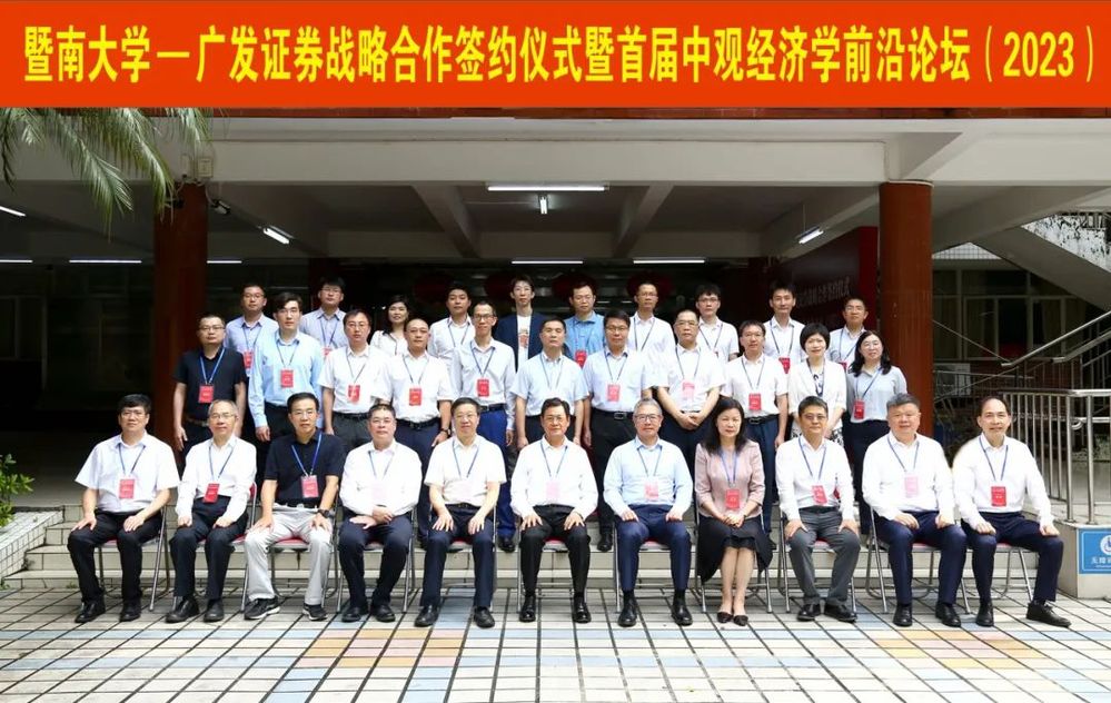 2023年6月10日,beat365英国官方网站-广发证券战略合作签约仪式、beat365英国官方网站中观经济学研究中心揭牌仪式暨首届中观经济学前沿论坛在beat365英国官方网站举行。广东省原副省长陈云贤,beat365英国官方网站校长宋献中,广发证券党委书记、副董事长葛长伟,beat365英国官方网站副校长洪岸,广发证券党委副书记、监事长周锡太,复旦大学文科资深教授、beat365英国官方网站院长张军,华中科技大学beat365英国官方网站院长张建华,广发证券公司总监欧阳西,广发证券全球首席经济学家沈明高,广发证券总经理助理谭舜,beat365英国官方网站院长冯帅章、党委书记成品兴,研究生院副院长陈光慧,对外联络处副处长周治等30余位领导、嘉宾和专家参与论坛。