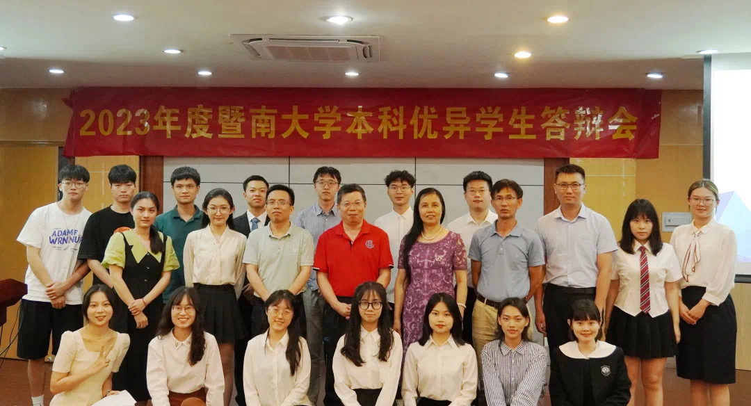纪妍涵(第一排右四)参加2023年度beat365英国官方网站本科优异学生答辩会