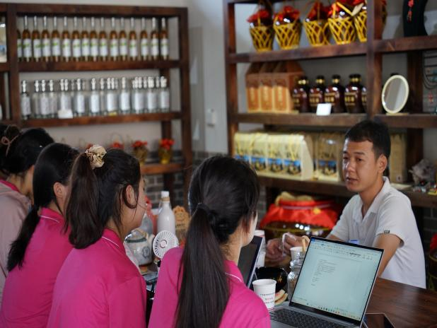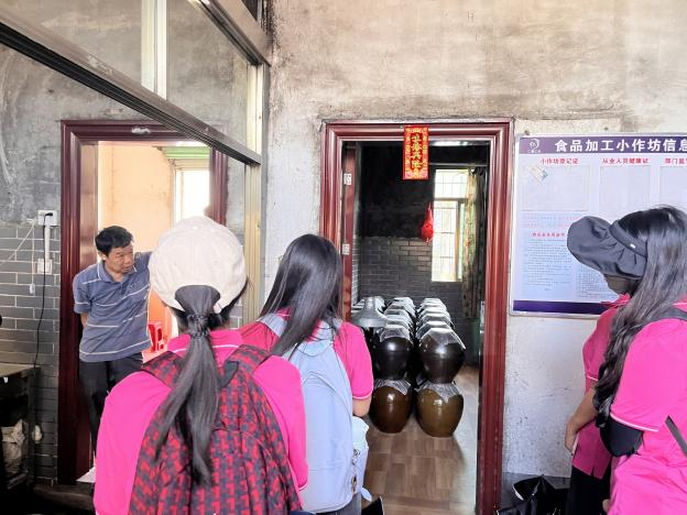 为深入研究堆花米酒的酿造工艺及其文化内涵,实践团前往非遗工作坊玉粟酒坊,在非物质文化遗产传承人李振弘师傅的引导下观摩、学习和体验堆花米酒的酿造工艺。在与李师傅的交流中,成员们了解到李师傅期望能够在传承好这项非物质文化遗产手艺的同时,助力乡村振兴。通过实地考察、体验和交流,团队成员认识到非物质文化遗产在乡村振兴中的重要作用,同时也了解到非物质文化遗产在现代社会中的传承和发展所面临的挑战与机遇。