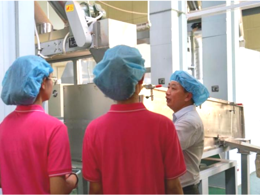 成员在厂长带领下参观英德红茶生产车间