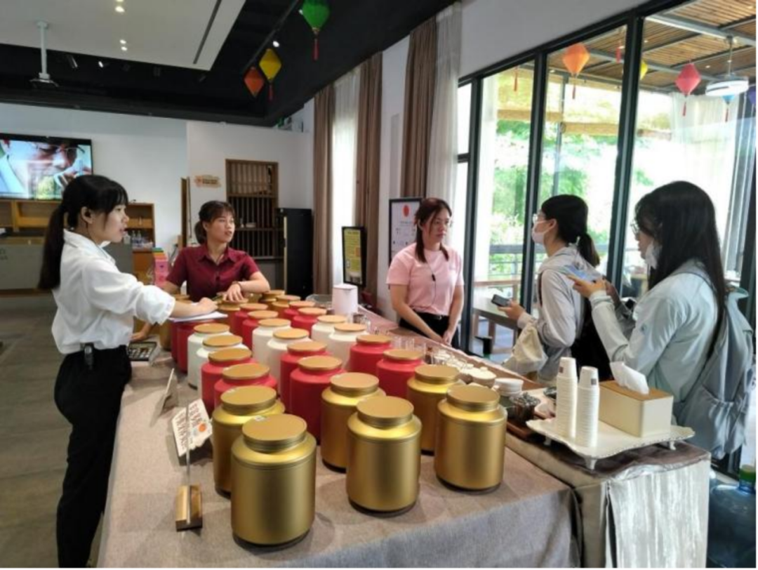 为探究英德红茶近年来的茶旅发展模式,实践团前往英德市龙头茶企T三茶园和积庆里茶园展开实地调研。团队成员走进当地龙头茶企,观看茶艺表演,体验传统制茶方式等一系列茶事活动,深入了解企业为当地农民提供固定工作岗位,带动贫困户致富增收的做法,并走进茶叶生产工厂,直观地了解英德红茶的加工步骤,对英德红茶机械化、智能化的生产方式有了更加深刻的认识。