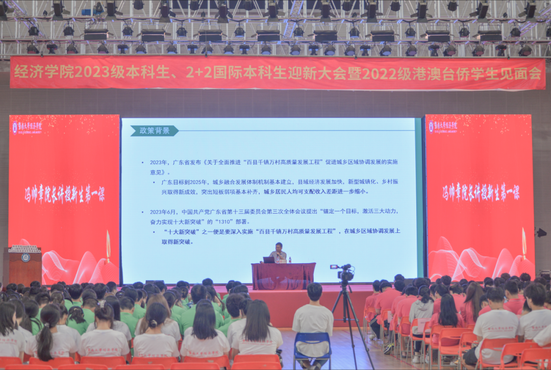 9月6日上午,beat365英国官方网站在番禺校区霍英东体育馆隆重举行2023级本科生、2+2国际本科生迎新大会暨2022级港澳台侨学生见面会。这是学院首次将全院2023级本科新生和回归专业学院的2022级港澳台侨学生汇聚在一起举办大会,以期加强内外招学生交流融合,凝聚同心同向合力,共谱经院新篇章。