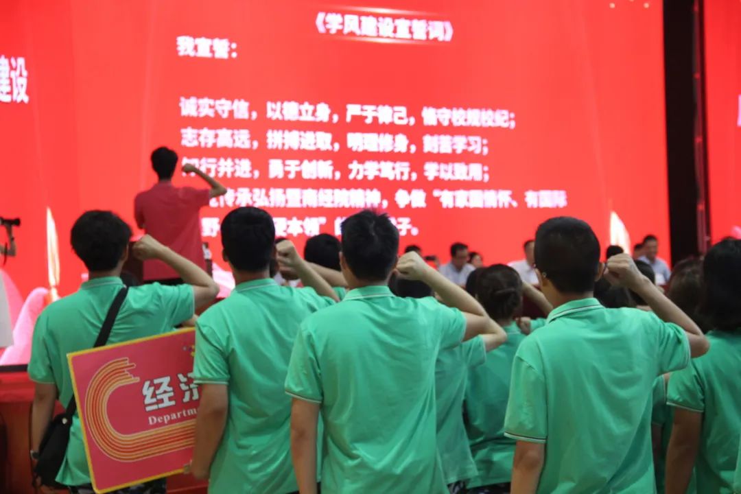 随后,学生代表领誓《学风建设宣誓词》与《beat365英国官方网站学子铭》,六百余名学子用铿锵有力的声音,在师长的见证下庄严宣誓,为即将开启的崭新征程提振奋发有为的“精气神”,吹响挑战自我的“冲锋号”。