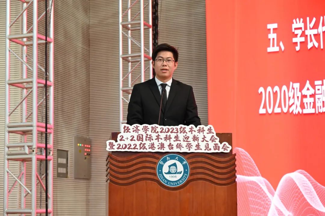 此外,冯帅章勉励同学们,面对机遇与挑战并存的现实环境,要厚植家国情怀,勇于迎接挑战:一是要主动融入多元包容的校园生活,努力成长为具备健全人格、宽厚基础、创新思维、全球视野和社会责任感的暨南经院人;二是要锤炼品德修为,以德立身,严格遵守校规校纪;三是要强健体魄,保持良好的心理状态,努力提升自我,并做到相互关心、共同进步;四是要怀有经世济民的热忱之心,关注经济社会发展,扎实学好能力本领。