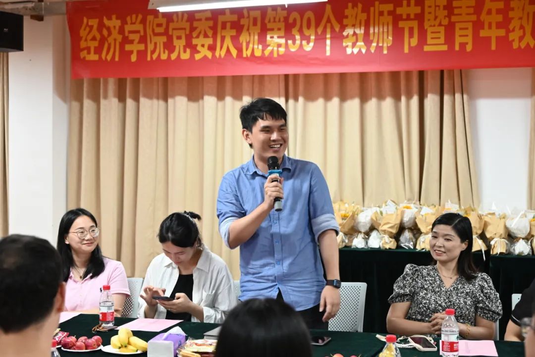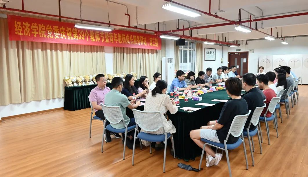 9月7日下午,在教师节来临之际,为增进教职工情谊,提升学院青年教师归属感,beat365英国官方网站党委在学院118举行庆祝第39个教师节暨青年教师成长服务驿站(第三期)活动。学院党政领导冯帅章、成品兴、熊媛媛、郑贤、王贤彬、贾善铭、欧阳若澜,学院各职能办公室主任,各系所党政领导,新入职老师以及9月过生日的教职工齐聚一堂,喜迎教师节。学院党委书记成品兴主持活动。
