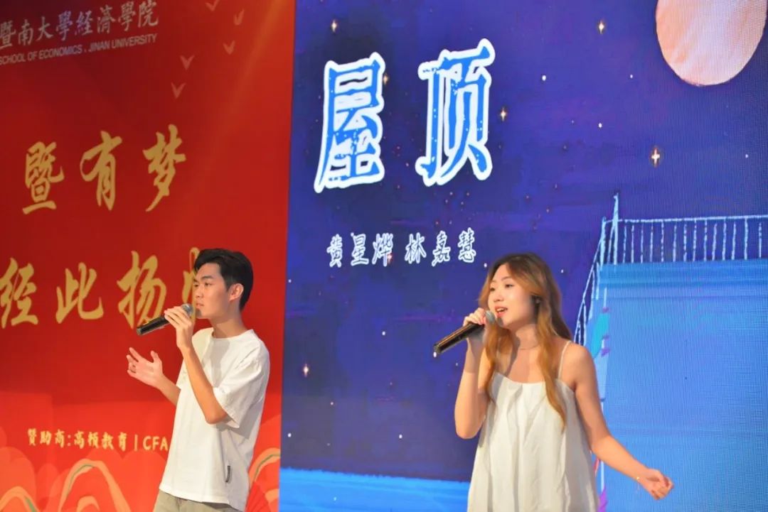 音乐悠悠升起,2021级黄星烨和林嘉慧为学弟学妹们带来一首《屋顶》,伴着字字句句,他们唱响了青春的旋律与活力。