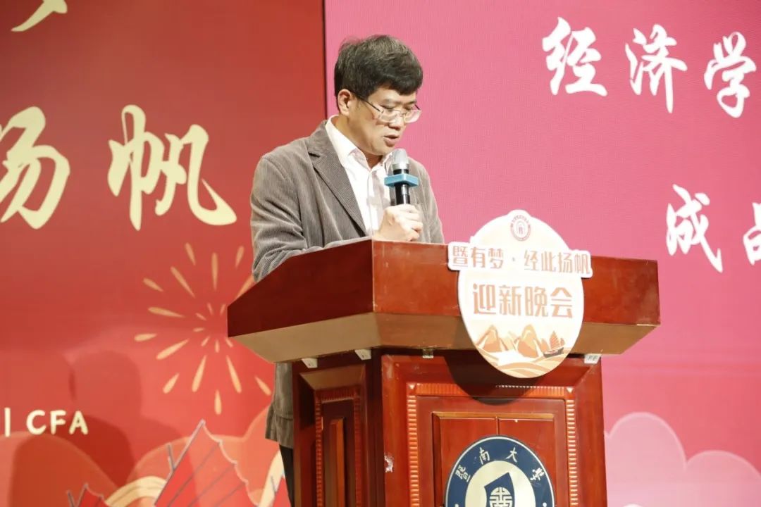 成品兴代表学院向同学们送上热烈的欢迎和祝福,勉励同学们牢记习近平总书记殷殷嘱托、坚定理想信念,认真学习、练就过硬本领,心怀感恩、做有温度的经院人,与学院心连心、同奋进、共命运,打造暨南经院的响亮名片。