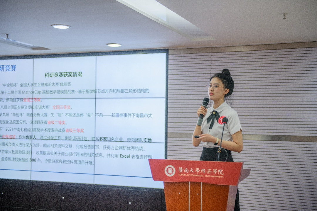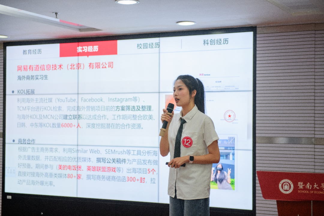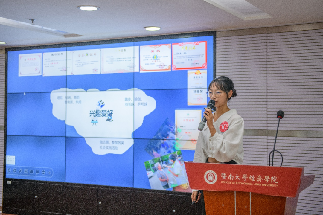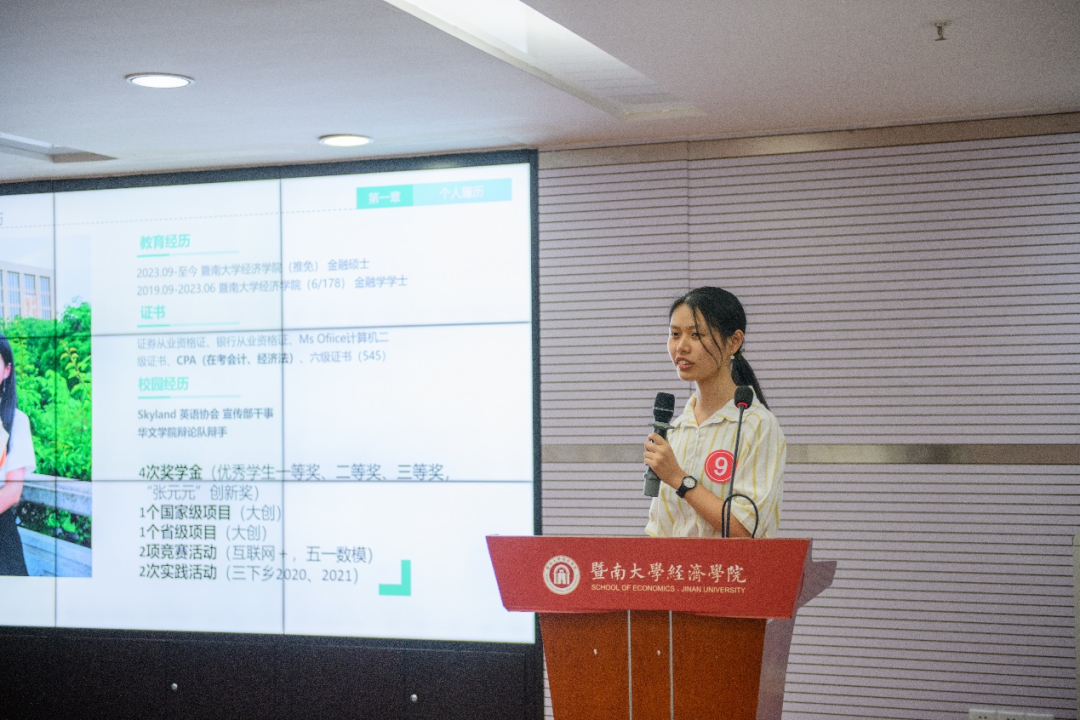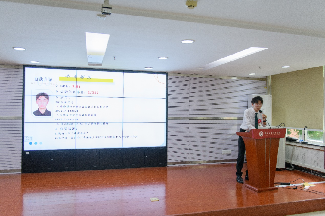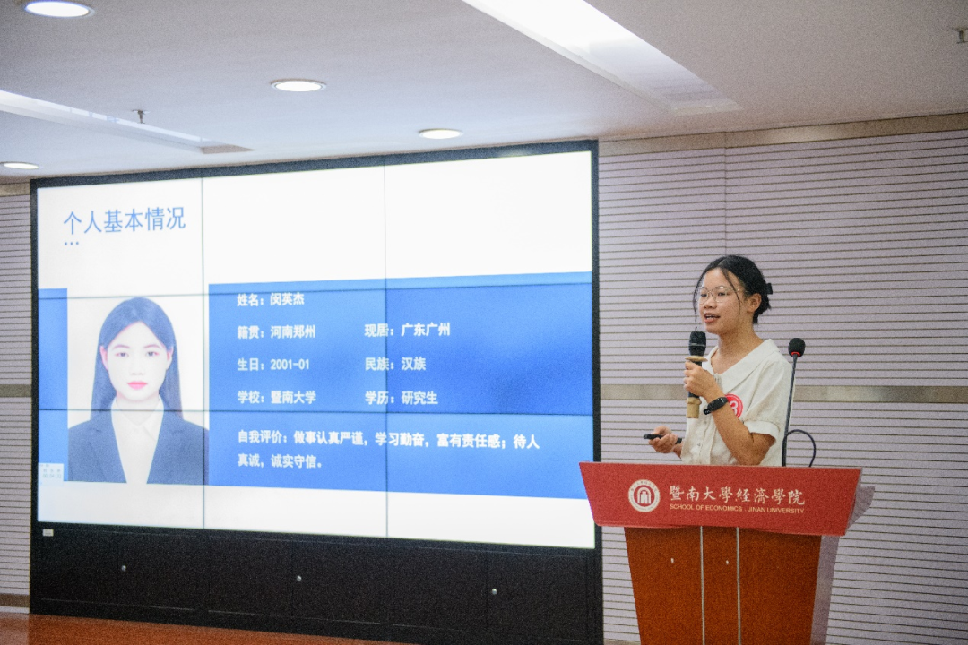 就业赛道的8位选手则进行就业能力展示。就业赛道选手以研一学生为主,他们陈述了个人求职意向和职业准备情况,多数选手在本科期间成绩优秀、校内外实践经历丰富,展现出经院学子良好的素质与就业能力。评委老师根据选手们的表现,提出真实工作场景中可能遇到的问题,并向优秀选手发出实习岗位邀请。