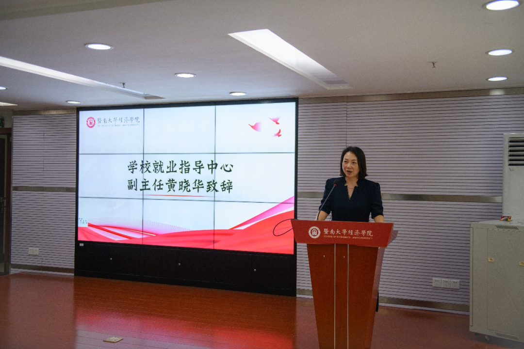 会议伊始,黄晓华副主任致辞。她表示,高校毕业生是国家宝贵的人才资源,是保就业稳就业的重点群体。她对同学们提出三点期望:一是践行校训精神,树立正确的成才观、职业观和就业观,做“言忠信、行笃敬”的忠诚守护者和执行者,到祖国和人民需要的地方去;二是科学合理规划,夯实专业基础,提升就业竞争力,希望同学们发扬“挤”和“钻”的精神,以“经世济民”为目标,努力把自己锻造成为优秀的复合型人才;三是认真参与比赛,展现青春风采,希望同学们借此赛事学习他人智慧,增长自身实力。