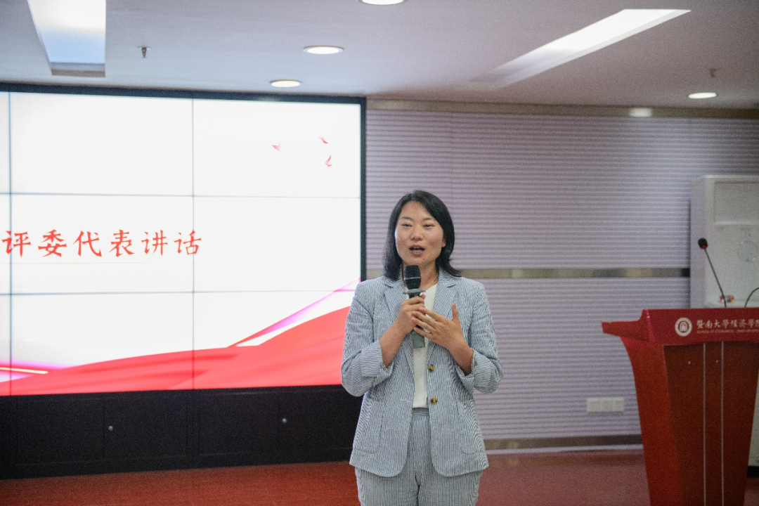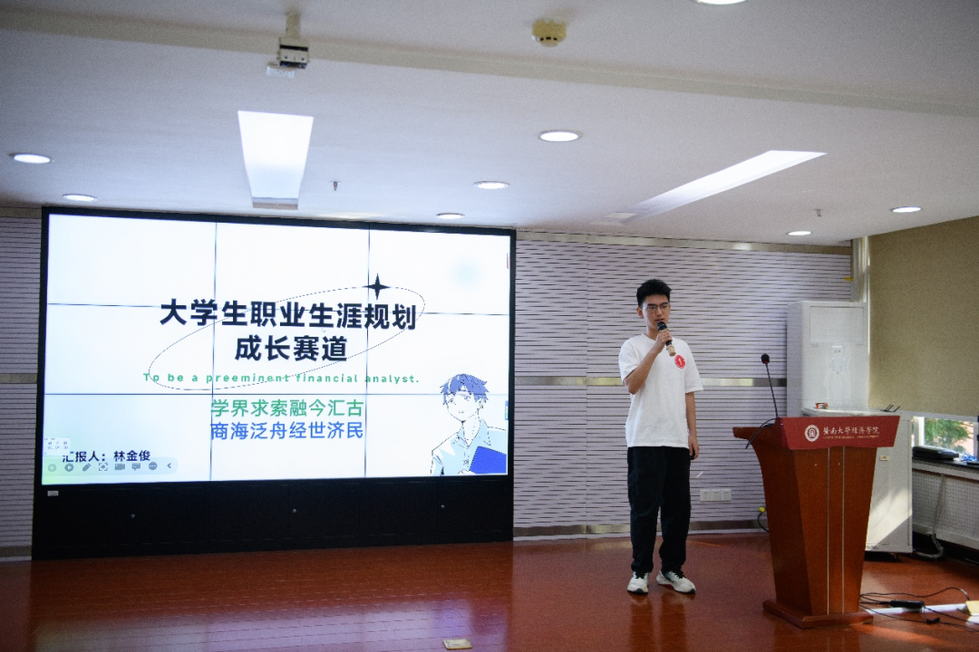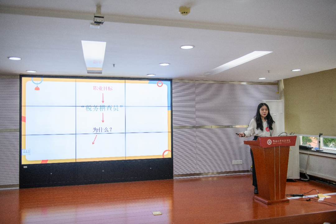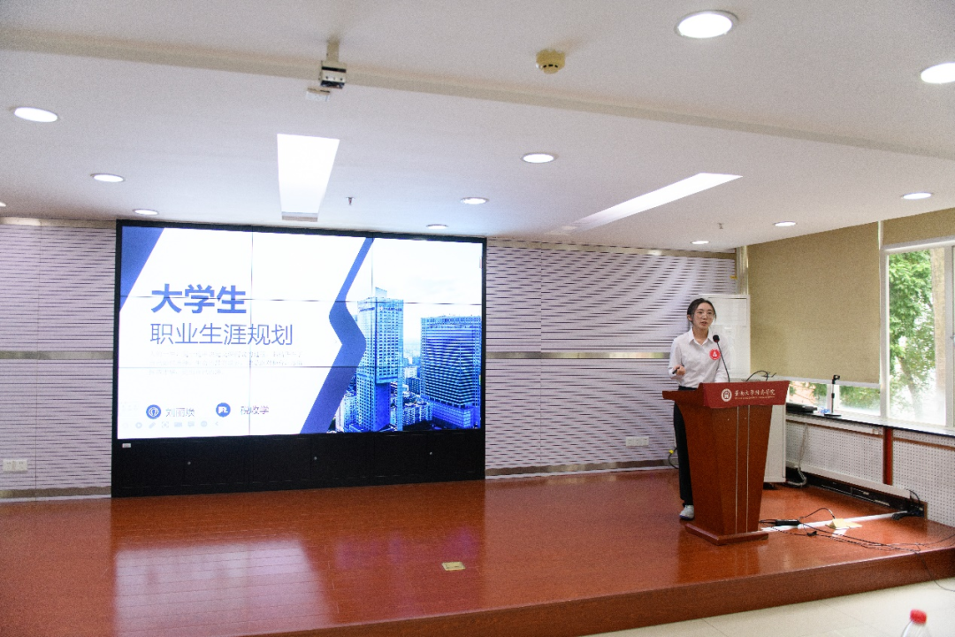 在两个赛道的选手展示完毕后,评委代表许国琪讲话。她表示非常欣喜,一方面大家能够向内看,充分认识自己;另一方面大家能够向外看,宏观地了解就业市场、行业发展、就业环境等。她向同学们提出两点建议:一是珍惜校园时光,夯实专业基础;二是擅于思考和提问,祝愿同学们既能够向下扎根、脚踏实地,又能够仰望星空,手摘星辰。