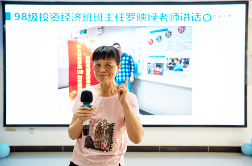 活动伊始,罗映绿老师翻开花名册,对同学们一一点名,同学们纷纷举手应到。大家抑制不住激动的心情,仿佛回到昔日课堂。作为98级投资经济班的“大家长”,她叮嘱大家在工作之余要保重身体、加强锻炼,才能在未来的工作生活中游刃有余。