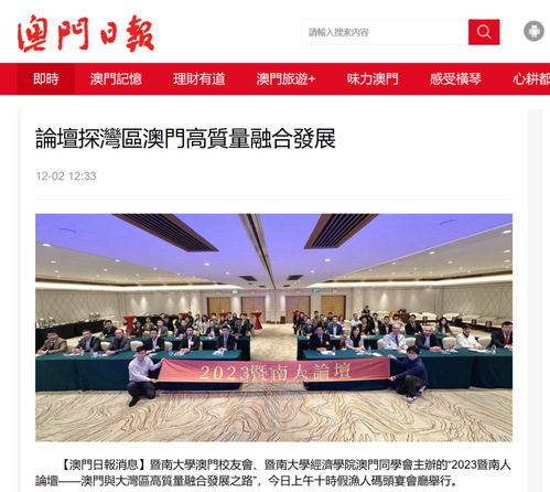 《澳门日报》经济要闻板块报道“2023暨南人论坛”