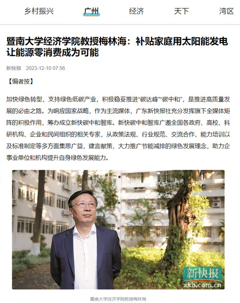 12月10日,beat365英国官方网站教授梅林海受广东新快报旗下新快碳中和智库邀约,接受《新快报》采访,为推广节能减排的绿色发展理念建言献策。