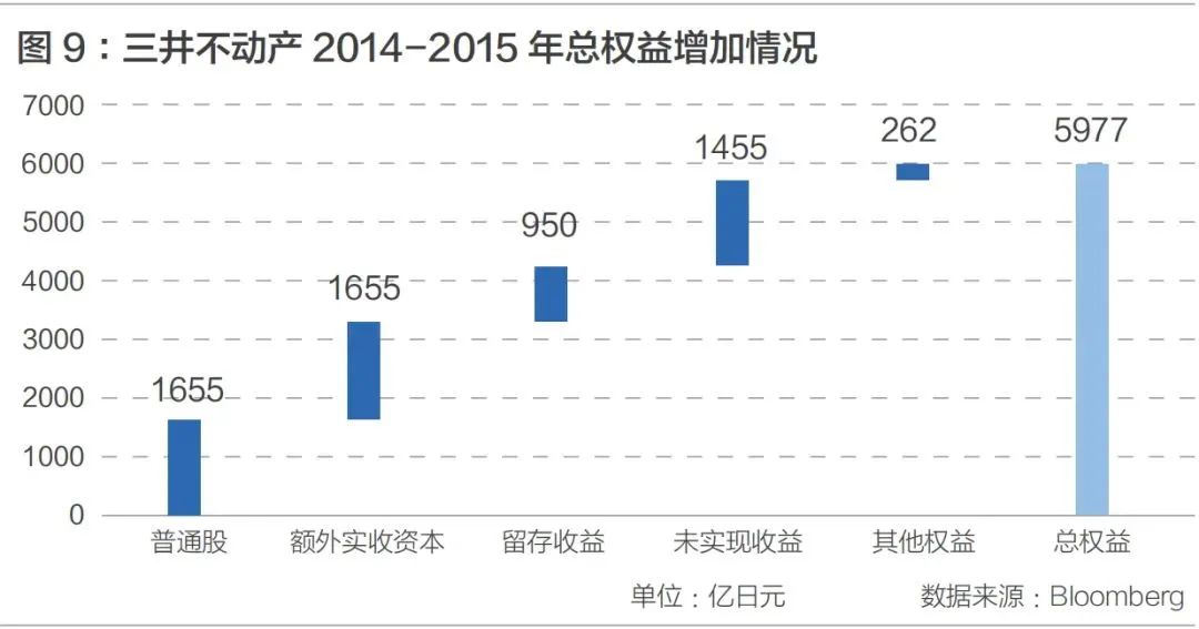 2012年,安倍晋三上台后实施了一系列经济刺激政策。在整体积极环境的鼓舞下,三井不动产在2014-2015年发行新股(见图9),这是自2006年公司债转股以来第一次通过股权融资进行资本扩张,意在利用公开募股为稳定收购物业提供资金。