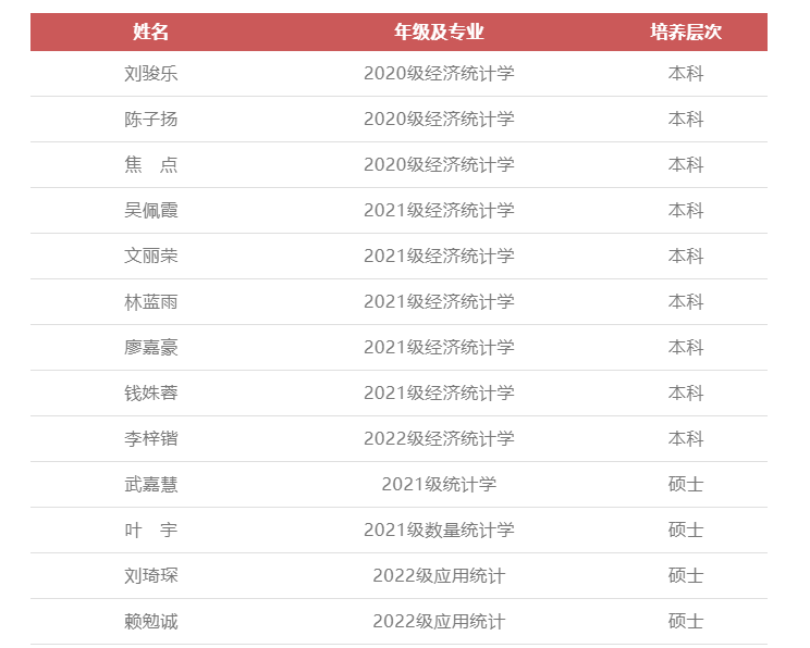 “计统88”奖学金获奖名单