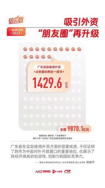 杨森平表示,2023年广东省在实际使用外资方面的显著成绩,不仅证明了其作为中国对外开放窗口的重要地位,也展示了其经济体系的包容性、创新力和国际竞争力。