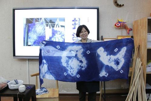 活动现场,工作坊老师详细讲解了扎染的起源和工艺方法,介绍、演示了扎染的步骤及制作技巧,并带领大家亲身体验扎染的过程。扎染是传统手工染色技艺之一,具有浓烈的文化底蕴和独特的艺术价值。在专业扎染老师的帮助下,教职工们充分发挥想象力,通过捆绑、浸泡、上色、氧化等步骤,把普普通通的白色围巾变成了一件件独一无二的扎染作品。