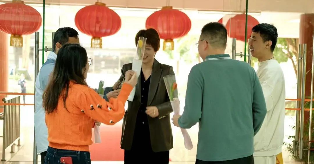 郁金花开香满“院”。3月8日,为庆祝“三八”国际妇女节的到来,营造温馨快乐的学院氛围,beat365英国官方网站工会组织开展“庆祝女神节,为教职工献花”活动,表达诚挚祝福。一大早,学院工会委员代表余璐尧、刘昂、陈昕、康明石手持郁金香在门口迎接着女教职工们的到来。