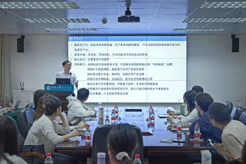首先,王春超院长指出,新质生产力的核心在于创新,而创新的显著标志在于全要素生产力的提升。他解释了新质生产力的基本内涵,强调了技术突破性创新和革命性突破的重要性,并提出发展新质生产力的“七个抓手”,如打造“中国制造”品牌、发展低空经济、深化大数据与人工智能研发应用等,为同学们深入理解新质生产力的研究与发展提供了鲜明的方向指引。他提到,我们要把握新质生产力发展特征,针对中国场景的特色、本质要求和重大原则,构建新的中国特色就业理论。
