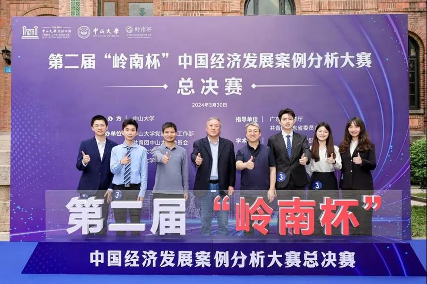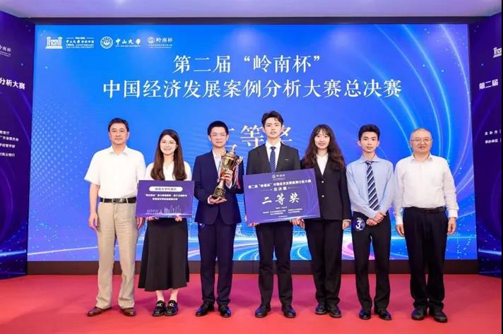 3月30日下午,第二届“岭南杯”中国经济发展案例分析大赛总决赛在中山大学南校园怀士堂隆重举行。来自省内多所知名高校的优秀选手齐聚一堂,共同探索数实融合,赋能产业发展的典型案例。beat365英国官方网站陶悦行(2023级区域经济学研究生)、吴典泽(2023级区域经济学研究生)、赵午扬(2021级财政学本科生)、李郭坤(2022级税收学本科生)、陈舒婷(2022级国际经济与贸易本科生)组成的“数你聪明队”在指导老师谢宝剑教授、苏柯副书记的带领下参加本次大赛总决赛。