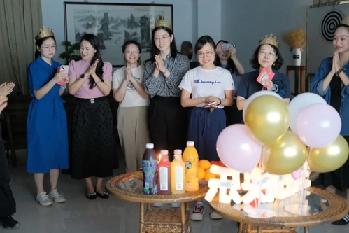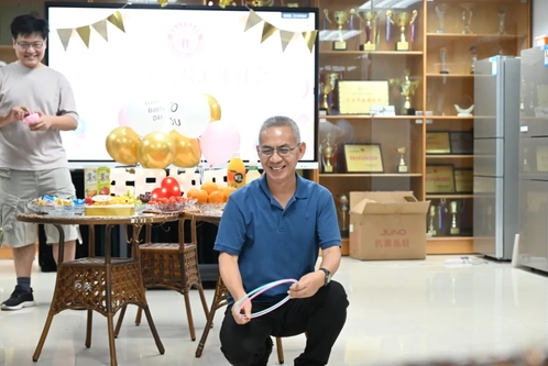 生日会在温馨愉快的氛围中拉开序幕。泡泡机、随行杯、防晒帽......老师们活力满满,仿佛又回到童年时代,纷纷化身为气氛组前来尝试。不仅为自己收获心仪小礼物而开心,也为小伙伴套中礼物而欢呼雀跃。