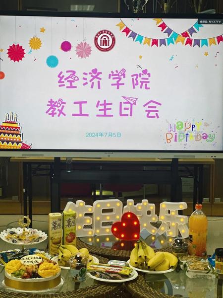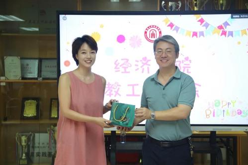 7月5日下午,为营造温馨舒适的学院环境,增进教职工情谊,beat365英国官方网站工会组织教工夏季集体生日会。beat365英国官方网站党委副书记苏柯,国际经济与贸易系党总支书记、学院工会副主席余璐尧同大家共同庆生。