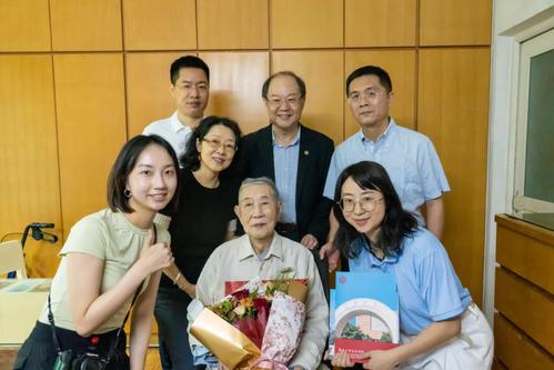 叶青山校友(后排中)与学院老师探望费存仁教授(第一排中)