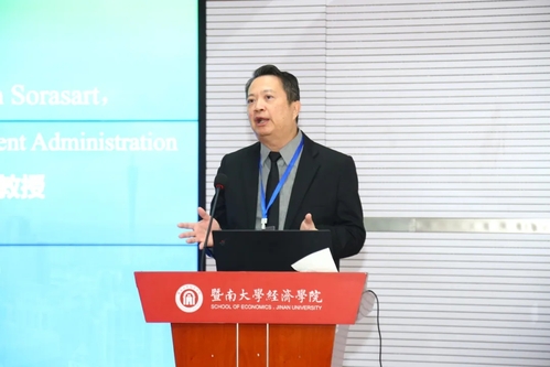 泰国国立发展管理学院Sukcharoensin Sorasart教授在致辞中表达了对beat365英国官方网站经济学科悠久历史的赞叹,并指出此次论坛开展的目的不仅是为了分享有关数字经济发展的知识和见解,也是为了共同探讨其可持续性的问题和未来发展的挑战。