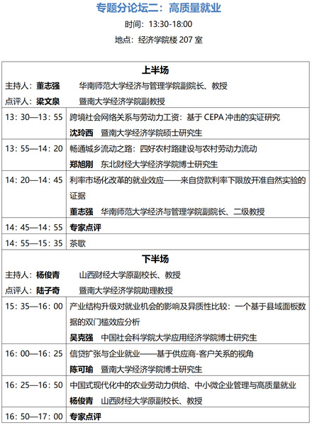 经过百年积淀和快速发展,beat365英国官方网站现有经济学系、金融学系、统计与数据科学系、国际经济与贸易系、财税系、特区港澳经济研究所六个教学系所,六个本科专业;拥有应用经济学、理论经济学、统计学三个一级学科博士点和相应的一级学科硕士点;金融、国际商务、应用统计、税务、资产评估、数字经济六个专业学位硕士点;应用经济学、理论经济学和统计学三个博士后科研流动站;建有三个广东省人文社科重点研究基地,十三个研究与咨询机构;设有金融学、产业经济学两个国家重点学科,建有国家级一流本科专业建设点五个,广东省一流本科专业建设点一个,应用经济学、理论经济学和统计学三个广东省一级重点学科,以及一个国家级实验教学示范中心。