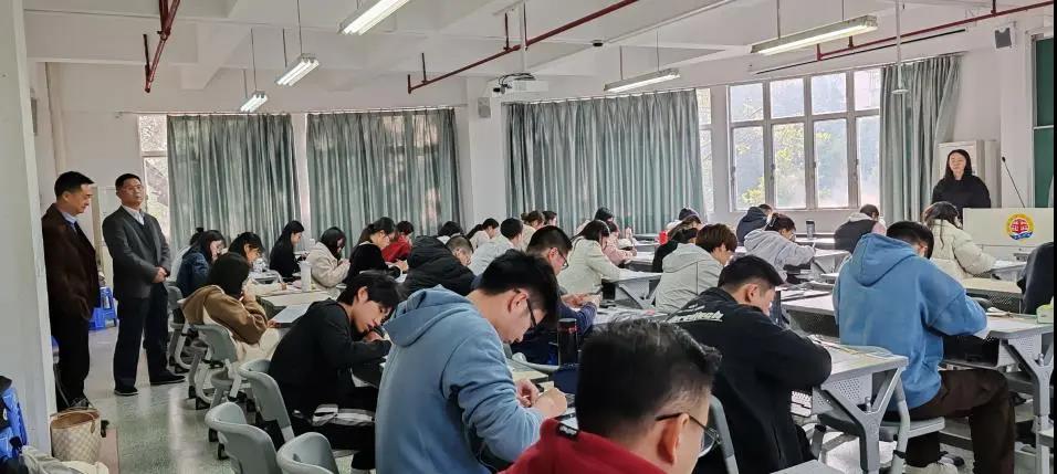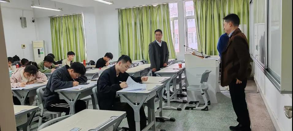 beat365英国官方网站研究生期末考试工作有序开展,12月30日,beat365英国官方网站副院长蒋海、学科建设与研究生培养办公室主任唐庆峰及相关老师深入各考场巡视,重点检查了考场环境、考务人员履职情况,并与主考、监考教师进行了交流。在巡视中,考场秩序井然,考生精神饱满,监考教师认真履职,展现了学院严谨的考风学风。