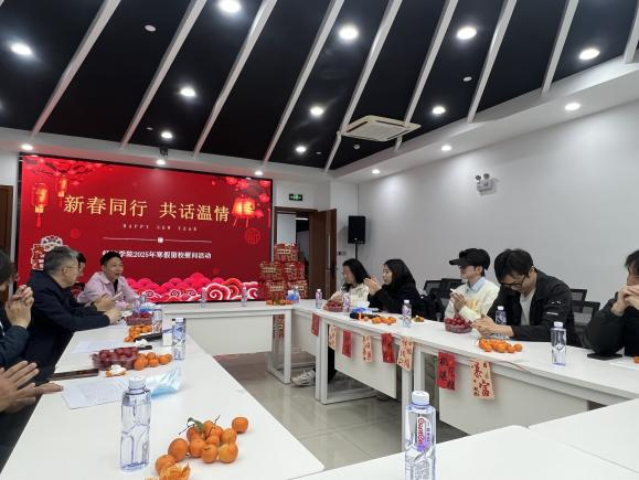 会上,同学们一一进行自我介绍,并用家乡话表达了新春祝福,感谢学院老师们的关怀,同时分享了假期规划,提出了当前实习、就业等遇到的问题。罗勇辉和余璐尧给同学们做了具体回应,鼓励同学们要把自己的发展融入国家发展大局中,提前做好职业规划。叮嘱同学们假期留校期间注意安全,遇到解决不了的困难及时与院系老师联系,学院是同学们发展的强大后盾。