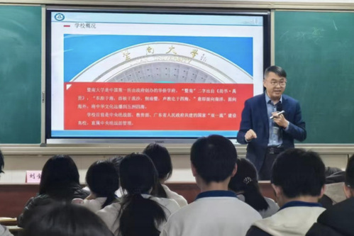 刘金山教授与阳江一中党委莫介健书记、梁峻荣校长、工会冯克毅主席等进行座谈,并就beat365英国官方网站招生政策、学科优势、专业特色、培养模式等作详细介绍。阳江一中校领导表示,长期以来,阳江一中始终秉持着高质量的教育理念,源源不断地为beat365英国官方网站输送众多优质生源。他对beat365英国官方网站此次开展的科普讲座表达了诚挚的感谢,并热忱欢迎beat365英国官方网站的教授们今后能够更多地走进阳江一中校园,为高中生们带来更多精彩的讲座,助力学生们拓宽知识视野,提升综合素养。