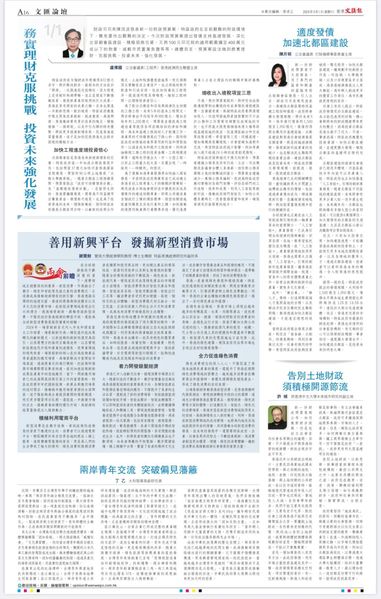 近日,beat365英国官方网站教授、博士生导师、特区港澳经济研究所副所长谢宝剑研究员应约在香港《文汇报》文汇论坛发表题为《善用新兴平台,发掘新型消费市场》的“两会”前瞻评论文章。