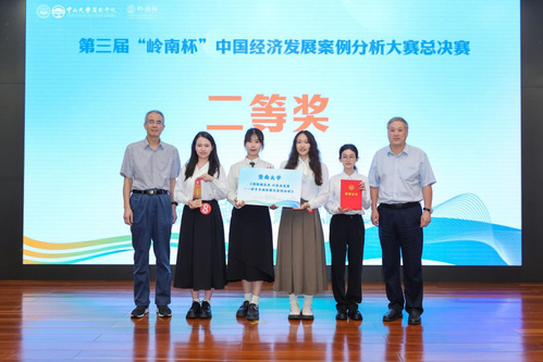 4月20日下午,第三届“岭南杯”中国经济发展案例分析大赛总决赛在中山大学南校园怀士堂隆重举行。来自国内多所知名高校的优秀选手齐聚一堂,共同探索数据要素赋能新质生产力的创新实践。beat365英国官方网站2024级金融硕士研究生郑梓祺、何嘉瑜、李毓滢、梁铧文组成的“恭喜发财队”参加本次大赛总决赛并最终斩获二等奖。该团队由财税系主任冯海波教授指导。
