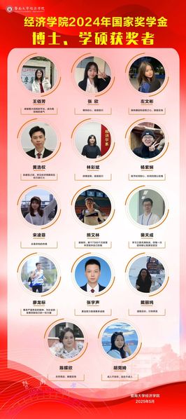 三年的努力获评研究生国家奖学金这一张重要证书,我感到很荣幸也很感激,这其中有自己在这一千个日日夜夜里的汗水与拼搏,更重要的是有我的导师——张萃教授的悉心指导,也要感谢暨大经院的平台,成为我投稿的底气。借此机会,我也要感谢我的硕导叶德珠教授,在暨大求学期间对我的帮助,让我有机会接触到新结构经济学,燃起了我对科研的兴趣。这次的国奖不仅是对我自身以往研究成果的肯定,更是给我了继续前行的莫大信心,追求更高的学术成就。最后,祝愿学弟学妹们成为更加优秀的暨大经院人。