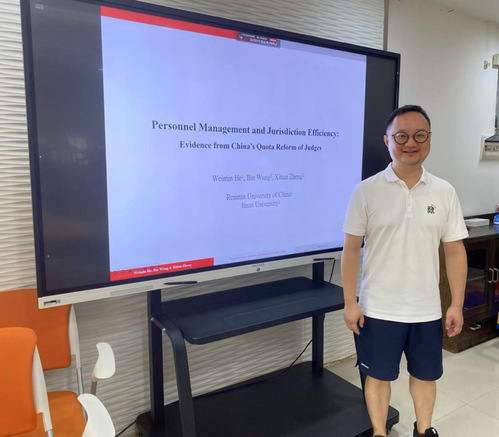 6月19日,2024~2025学年春季学期第四期“经济学系午间Workshop”在beat365英国官方网站306顺利举行。本期Workshop由经济学系李长洪老师组织,经济学系王彬老师担任主讲嘉宾,分享了《博弈论:理论与现实故事》慕课课程建设的心得体会,以及题为Personnel Management and Jurisdiction Efficiency: Evidence from China’s Judge Quota Reform 的论文。
