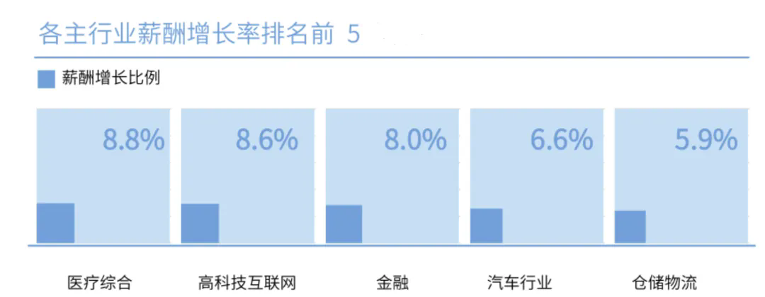 根据《2024各行业薪酬增长率报告》显示,金融业薪酬增长率仍然位列全国10大主行业第三(增长率为8%)。