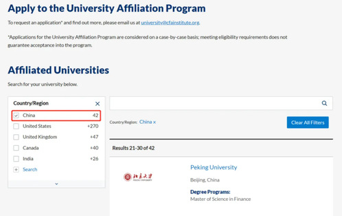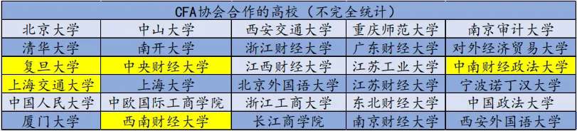 *官网可查询与CFA协会有密切合作的中国大学