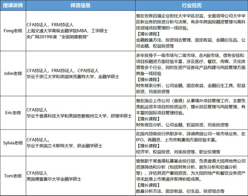 *CFA金融班华南师资一览