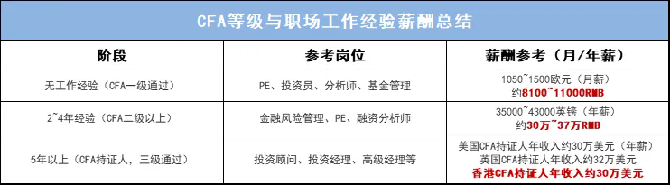 *CFA各个阶段薪酬与岗位参考