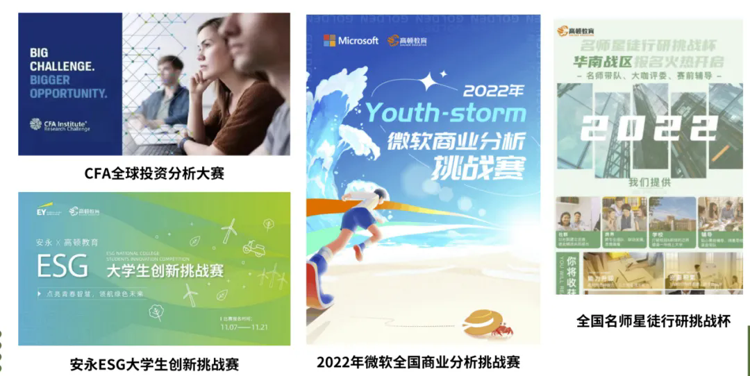 ②主题商业挑战赛:学员专属金融商赛,名气加持,意在通过商赛丰富学员经历,多维度提升学员能力,在掌握课程技能方法的同时,实现从个人应用能力到团队协作能力的全面进阶