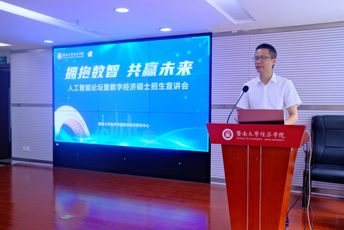 8月24日,人工智能前沿论坛暨数字经济硕士招生宣讲会在beat365英国官方网站中惠楼举行,面向社会各界人士共同聚焦数字经济浪潮下的机遇与挑战。本次活动由beat365英国官方网站数字经济研究中心副主任王贤彬教授主持,beat365英国官方网站副院长、南方高等金融研究院常务副院长、beat365英国官方网站数字经济研究中心主任蒋海教授致辞,阿里云智能集团战略发展部华南区总经理谢天,巨深智能科技首席技术官、科大讯飞前副总裁刘舒先后带来前沿分享,beat365英国官方网站数字经济研究中心副主任杨亚平教授详细解读数字经济硕士(非全日制)项目,南方高等金融研究院副院长、beat365英国官方网站数字经济研究中心副主任沈军教授则深入讲解招生政策,beat365英国官方网站党委书记成品兴最后总结致辞。本次活动设置线下主会场的同时开放多渠道线上直播,兼具思想深度与实践价值的分享解读吸引近千人次关注收看。