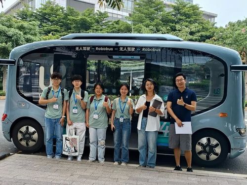 线下,师生们深入企业的生产车间和办公现场,近距离观察生成式人工智能在原料检测、工艺参数优化、生产流程监控、数据处理、营销文案生成、产品设计、智能招聘等实际业务场景中的应用效果。在广州唯品会,大家饶有兴趣地体验了人工智能购物镜带来的个性化推荐;在文远知行,团队成员亲身体验了无人驾驶小巴,感受到科技带来了无限魅力。
