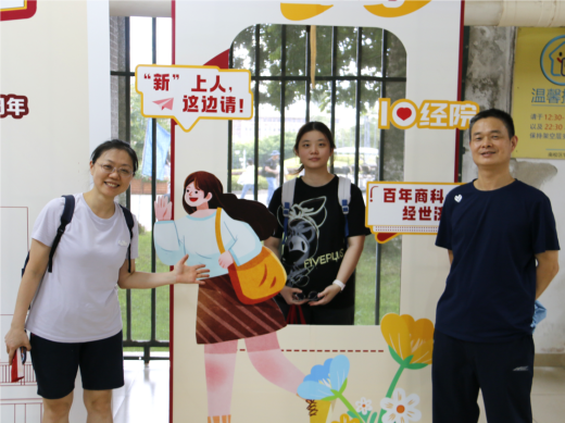 现场布置的迎新创意展板成为最受欢迎的打卡点。在主题展板前,许多新生家庭合影留念,记录下这一重要时刻。