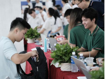 为给新生留下独特的入学记忆,学院特别定制了青年起航·暨梦飞扬签名树。新生们在绿叶形卡片上写下名字,亲手投入透明圆形装置,寓意在暨南园扎根成长,开启人生新篇章。