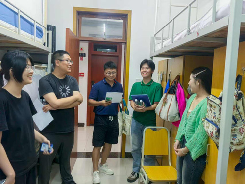 走访中,领导老师们细致询问新生们的入住适应情况,鼓励大家积极融入集体生活,合理安排学习时间,注意宿舍用电与财物安全,并保持积极健康的心态。老师们特别提醒同学们,近期广州天气多变,注意防暑降温,遇到困难及时联系老师们和学长学姐。